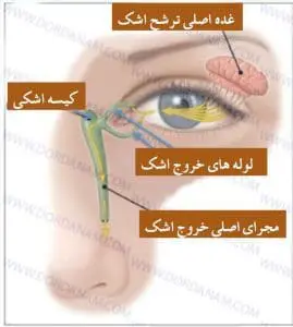 این مجاری، اشک را از چشم خارج می کنند. این مجاری شامل دو سوراخ در قسمت داخلی پلک های فوقانی و تحتانی است که به یک لوله ختم شده که به کیسه اشکی و از آنجا توسط یک لوله دیگر به داخل حلق و بینی می ریزند. همیشه بین ترشح و خروج اشک یک تعادل وجود دارد. افزایش ترشح و یا کاهش خروج آن باعث آبریزش ، کاهش ترشح یا افزایش خروج آن باعث خشکی چشم می شود.