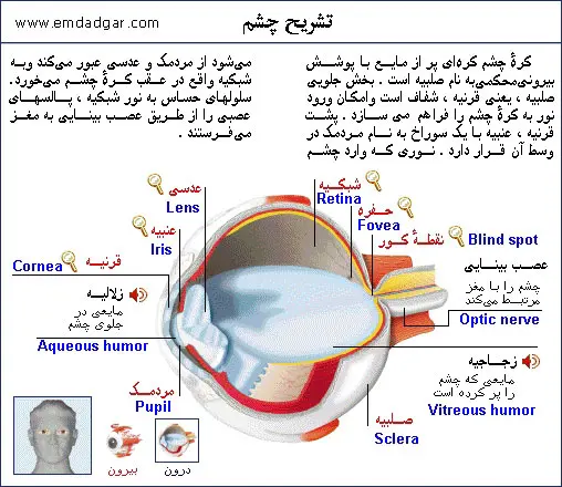 کره چشم انسان شبیه به اندازه تقریبی یک توپ پینگ پونگ است و در یک حفره توخالی کوچکی در جمجمه قرار دارد. کار اصلی چشم آن است که نورهایی را که از خارج دریافت می کند طوری روی پرده شبکیه متمرکز کند که تصویر دقیقی از شیء مور نظر روی پرده شبکیه ایجاد شود. شبکیه این تصاویر را از طریق عصب بینائی به صورت پیام های عصبی به مغز ارسال می کند و این پیام ها در مغز تفسیر می شوند. بنابراین برای واضح دیدن، قبل از هرچیز لازم است که نور به طور دقیق روی پرده شبکیه متمرکز شود.